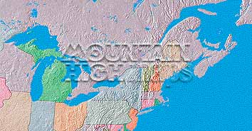 Top left: Elevation low-contrast relief rendering Top right: Vegetation high-contrast relief rendering Middle left: Grayscale land-only relief rendering Middle right: Political low-contrast relief rendering Lower right: Geo-political vector Illustrator EPS maps Inventory of maps and masks within each map portfolio