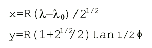 Q: What is the map projection formula for the Gall World Map?