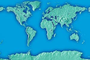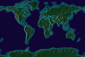 Fern green continents - deep saphire ocean