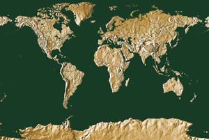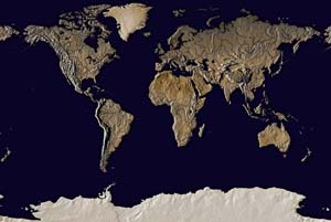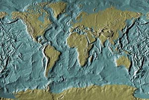 Khaki continents - steel blue ocean