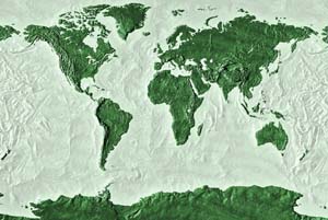 Emerald green continents - tea green ocean