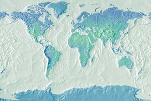 Various greens:turquoise poles - pale blue ocean