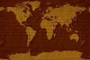 Burnt umber continents - copper ocean